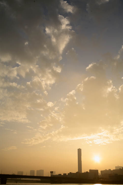 写真の、高い塔のようなのは、晴海の清掃工場の煙突です。